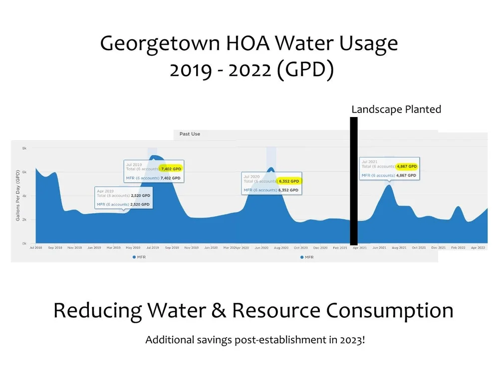 The Georgetown Gardens project not only serves the residents of the 24 townhomes in Fort Collins but also provides real-world data and demonstration capacity for similar developments in Northern Colorado. The project stands as a powerful case study in goal oriented, community driven landscape design, the incredible power of plants, finding creative solutions to the challenge of executing capital improvement projects within HOA structures, and how to reduce resource use while increasing community and ecological benefit.